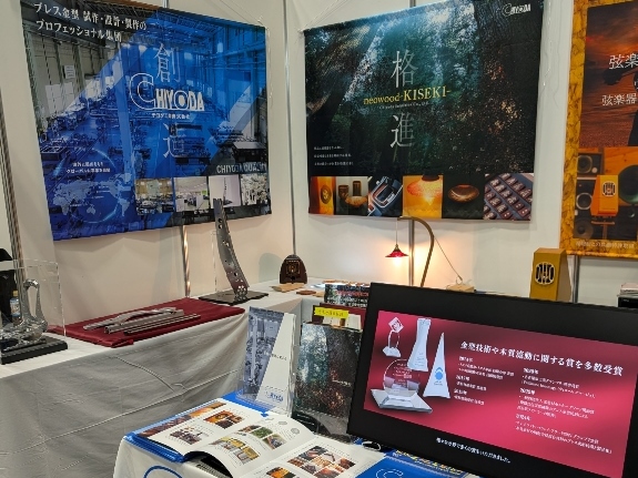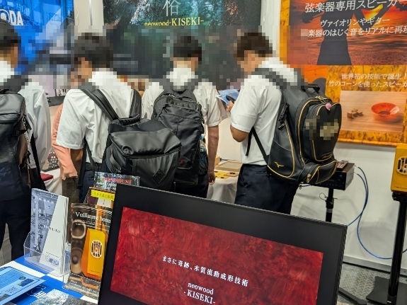 当社ブースでは、木質流動成形技術を用いたスピーカーを中心に展示し、多くのお客様にご来場いただきました。