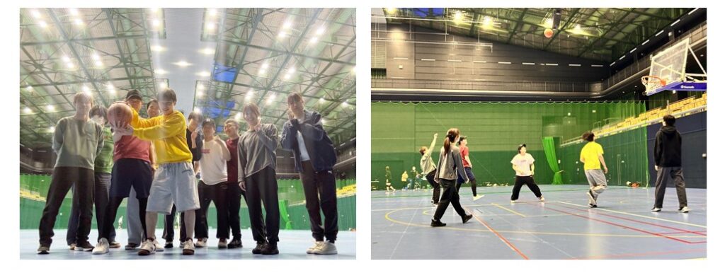 今回はバスケットボールを楽しみました。当日は、バスケットゴールを工具で設置したり、ボールの貸し出し場所が分からなかったりと、
